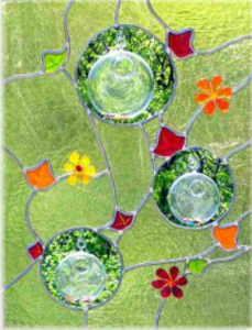 Des vitraux , mais pas que… Pauline crée aussi des sculptures, tableaux. Toujours en verre, et en multipliant les techniques, fusion, thermoformage, sablage.
