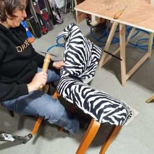 - Préparer, découper et poser un tissu d’ameublement sur l’ensemble du siège