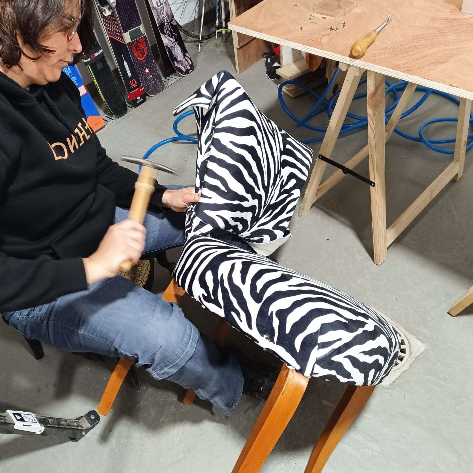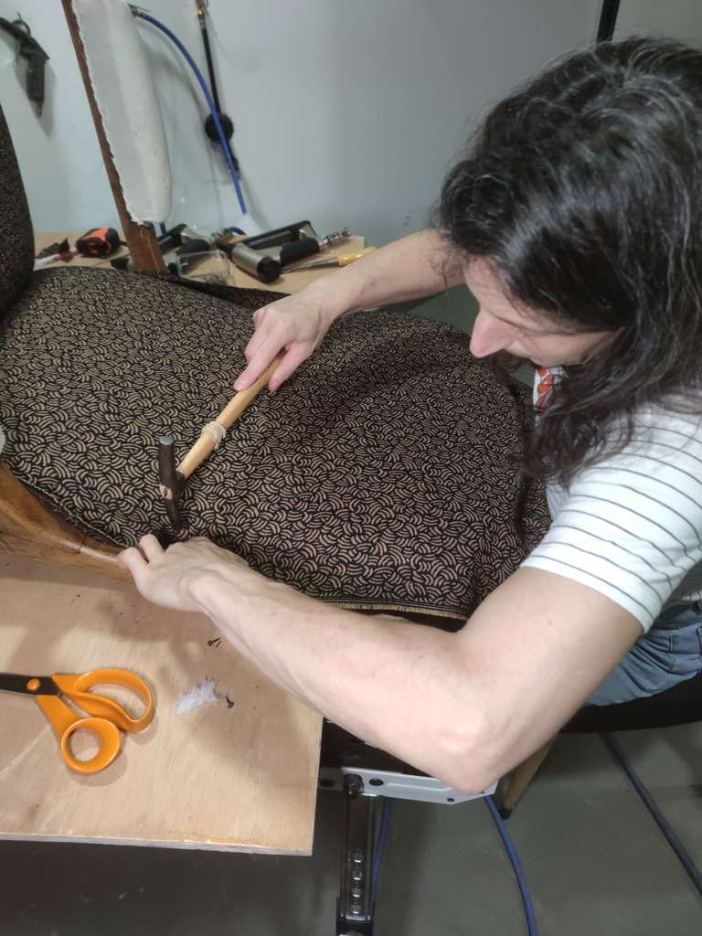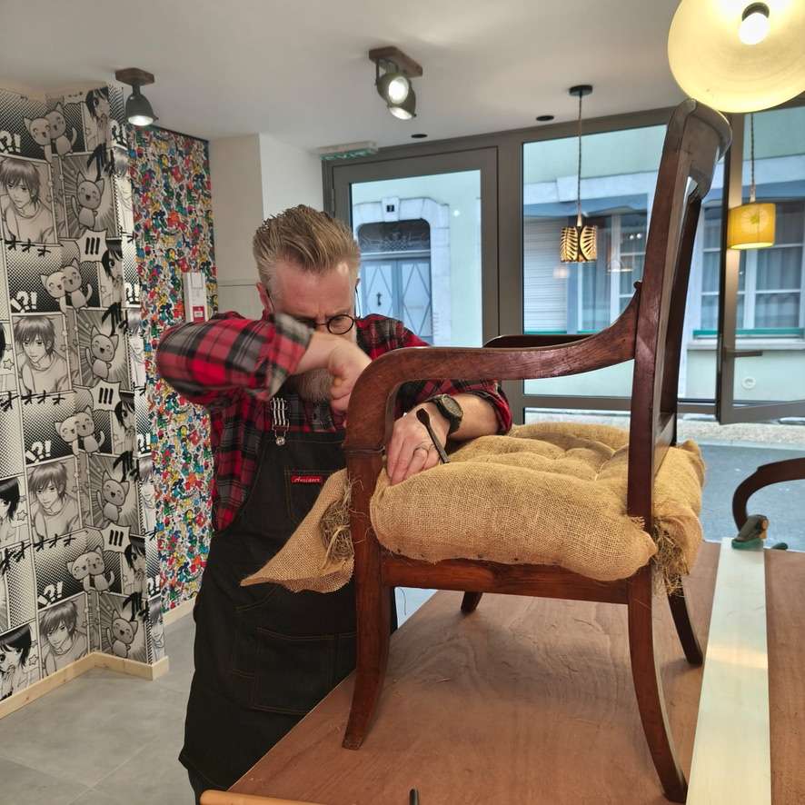 Guidé.e par Frédéric, tapissier créatif expérimenté, qui vous reçoit dans son atelier professionnel, vous travaillerez en conditions réelles, pour comprendre la logique du métier, manipuler les outils et repartir avec votre propre siège,