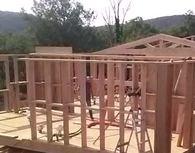 - Assembler les premiers éléments de structure (poteaux, sablières, lisses basses) et construire progressivement les murs